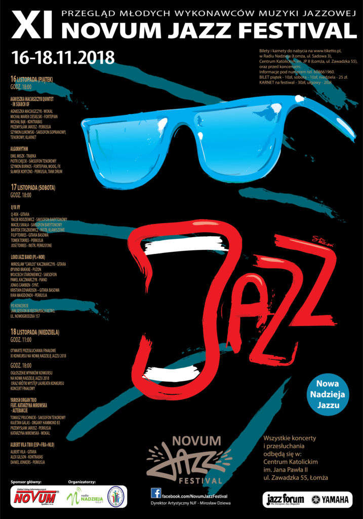W dniach 16 – 18 listopada odbyła się w Łomży XI edycja Novum Jazz Festival. Od początku powstania tej imprezy jej głównym punktem jest konkurs na Nową Nadzieję Jazzu przeznaczony dla solistów (instrumentalistów, wokalistów), którzy nie ukończyli 30 lat życia. Jak co roku – chęć wystąpienia w finale tego konkursu zadeklarowało kilkudziesięciu młodych jazzmanów – nie tylko z Polski. Po wstępnych eliminacjach jury postanowiło zakwalifikować do finału 15 wykonawców. Finał konkursu odbył się w trzecim dniu festiwalu – 18 listopada.